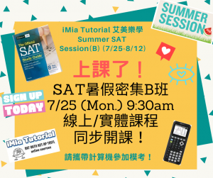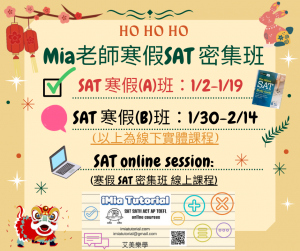 iMia 艾美樂 Change your cover photo上傳 Change your cover photo上傳 iMia 艾美樂 This user account status is 已核准 About About Posts Posts 留言 留言 2024暑假SAT密集班 2 年前 in: News, SAT no comments 📚2023 “SAT暑假密集班”上課了! 3 年前 in: News no comments 2023下半年SAT考試時間! 3 年前 in: News no comments 2023寒假SAT密集班來了! 3 年前 in: News no comments 暑假SAT密集 B班: 7/25-8/12~上課了! 4 年前 in: ACT, AP/ IB, News, Online Courses線上課程, SAT, SSAT/ ISEE, TOEFL, 留學諮詢 no comments 2020 暑假SAT密集班 4 年前 in: ACT, AP/ IB, News, Online Courses線上課程, SAT, SSAT/ ISEE, TOEFL, 留學諮詢 no comments Fall 2022 SAT dates 4 年前 in: ACT, AP/ IB, News, Online Courses線上課程, SAT, SSAT/ ISEE, TOEFL, 留學諮詢 no comments 📣📣SAT/ TOEFL/ AP 實體課程 10/16起 恢復上課! 4 年前 in: AP/ IB, News, Online Courses線上課程, SAT, TOEFL, 留學諮詢 no comments *2021春季/暑假課程公告: 5 年前 in: ACT, News, SAT, TOEFL no comments 📚*2021春季/暑假課程公告: Mia老師終於回來了!3月份恢復上課! 5 年前 in: ACT, News, SAT, TOEFL no comments load more posts